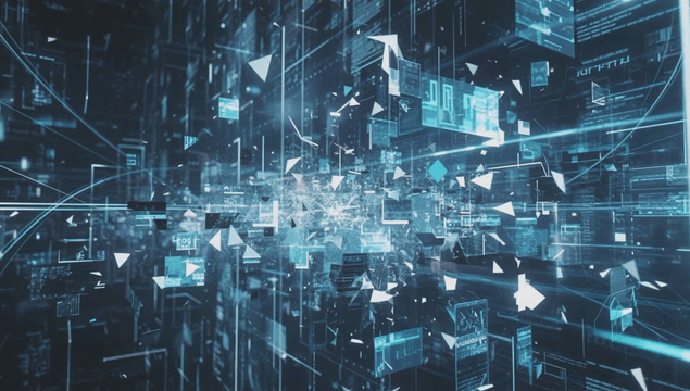 숫자와 이미지가 떠 있는 디지털 인터페이스