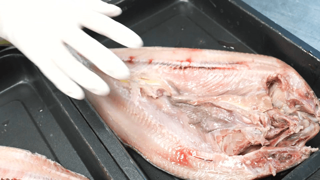 장갑을 끼고 생선을 준비하는 모습