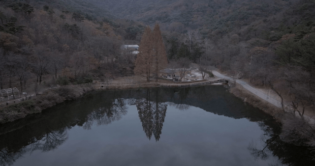 푸른 숲으로 둘러싸인 경치 좋은 호수