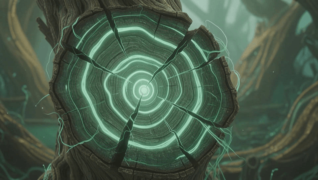 숲속에서 빛나는 신비로운 나무 그루터기