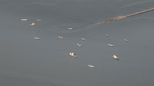 잔잔한 바다 위에 떠 있는 배들