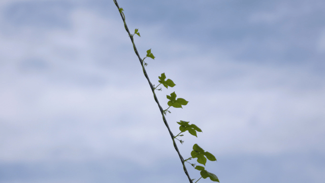금속 구조물과 녹색 식물 위 푸른 하늘