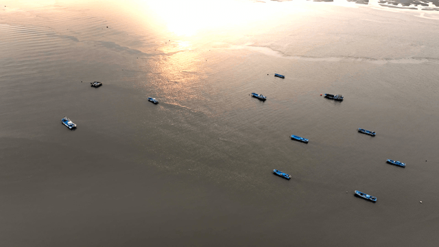 많은 새들이 있는 바다 옆 넓은 갯벌