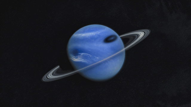 고리와 함께 있는 푸른 행성의 먼 모습