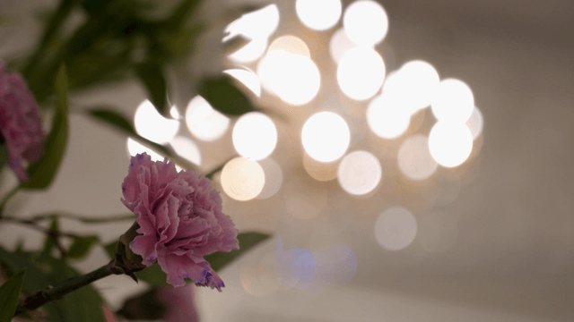 배경에 도시 스카이라인이 있는 분홍색 꽃