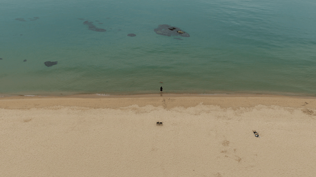 맑은 물과 바위가 있는 해변의 항공 뷰