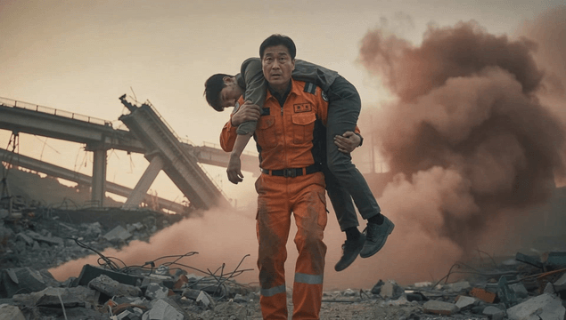폐허 속에 서 있는 노인