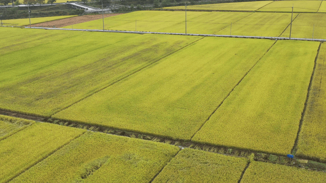 넓게 펼쳐진 황금빛 논과 마을