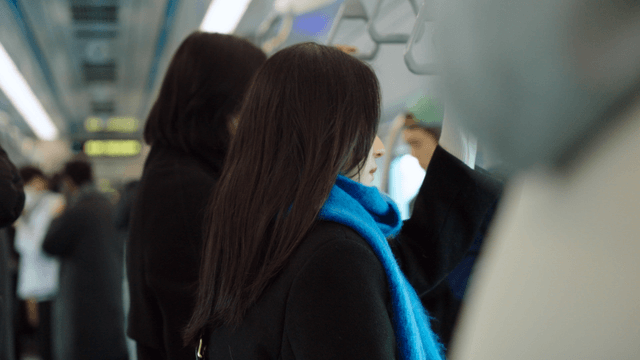 지하철 안에 서 있는 여성의 뒷모습