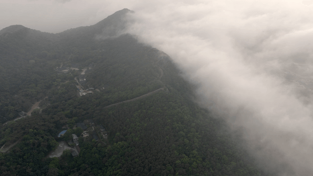 구름이 낀 안개 낀 산 풍경