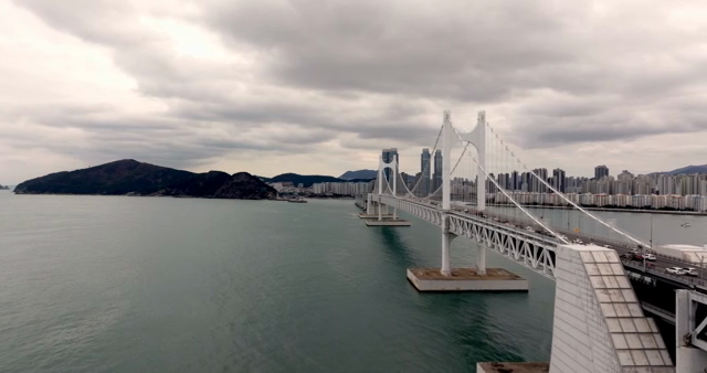 바다 위에 다리가 있는 도시 전경