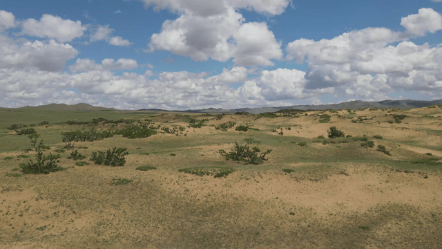 드문드문 초목이 있는 광활한 사막 풍경