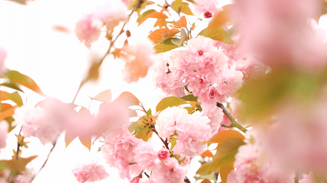 가지에 만개한 분홍색 벚꽃