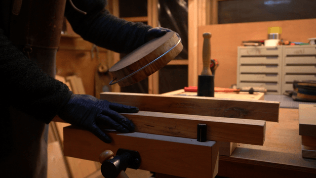 햇빛이 비치는 작업장에서 목공예를 하는 장인