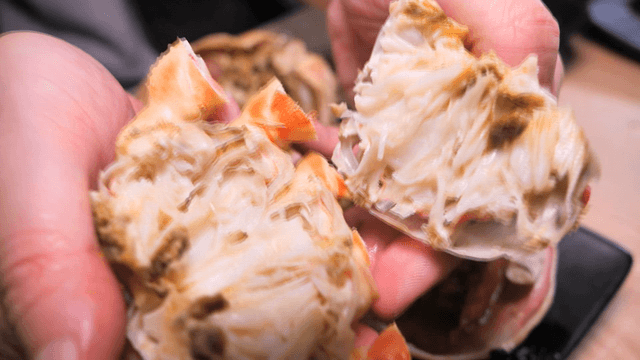 신선한 소프트 쉘 크랩을 들고 있는 사람