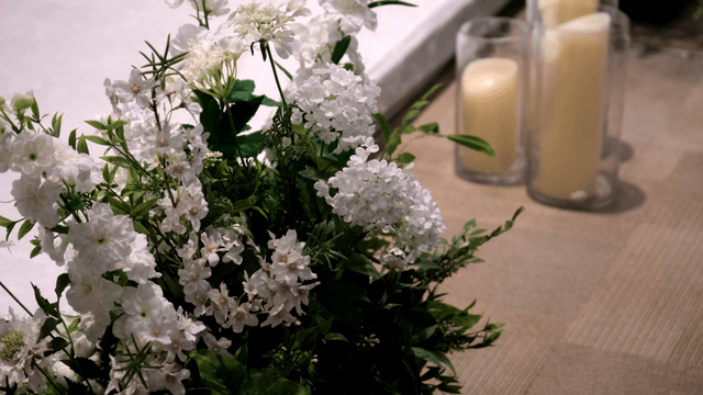 테이블 위의 촛불과 꽃