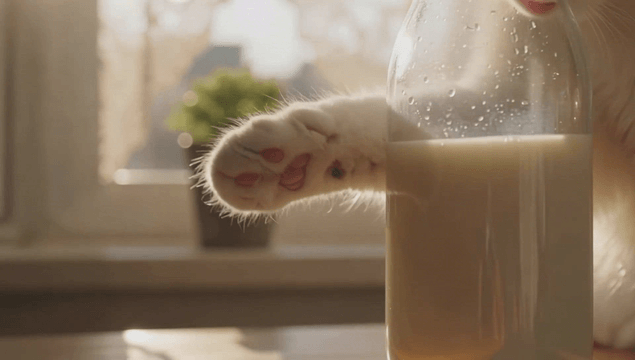 해질녘 바다 옆에서 팔을 휘젓는 고양이