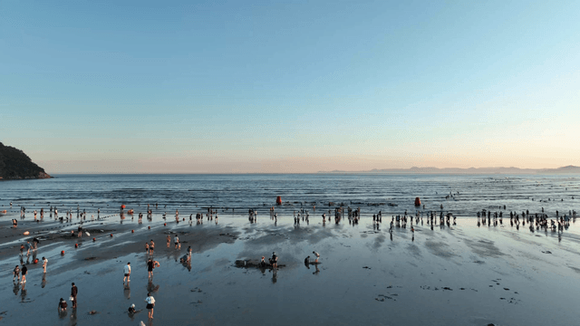 파도가 부드럽게 모래 해변에 부딪히는 모습
