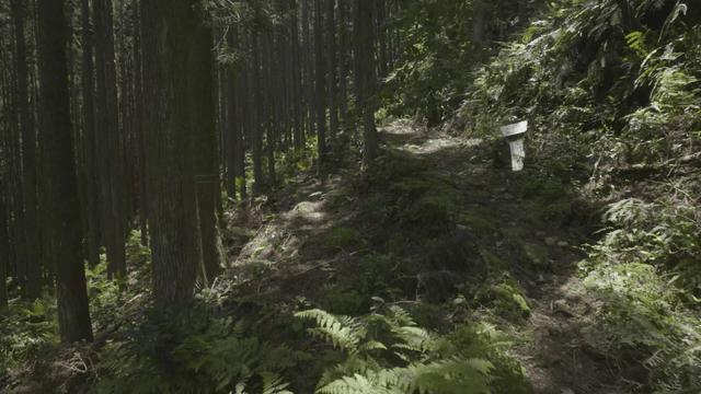 나무가 울창한 언덕길에서의 산책