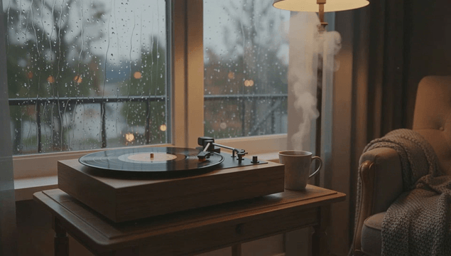 사람이 바이닐 레코드 플레이어를 설정하는 모습