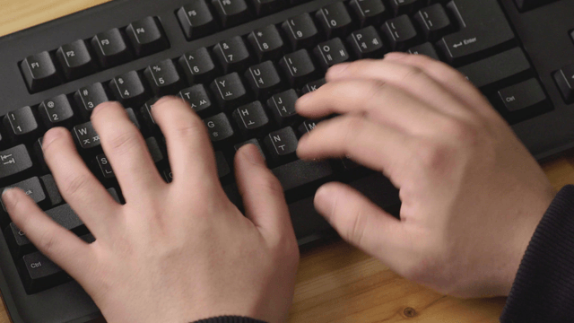 사무실 책상 위에 놓인 키보드를 두드리는 손