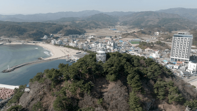 해안가의 언덕 위 울창한 숲