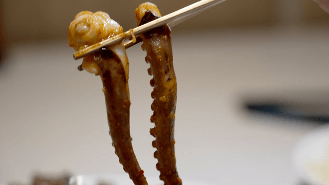 젓가락으로 집어올린 쭈꾸미구이
