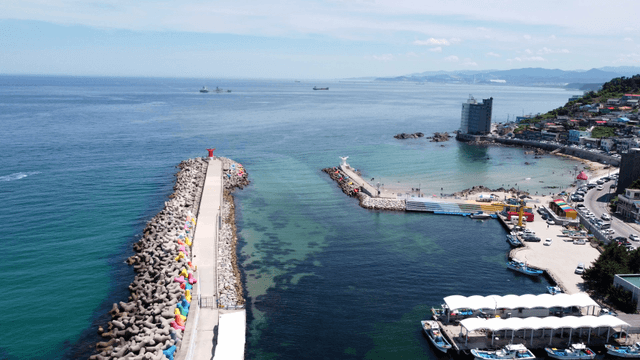 바다로 뻗어가는 알록달록한 방파제