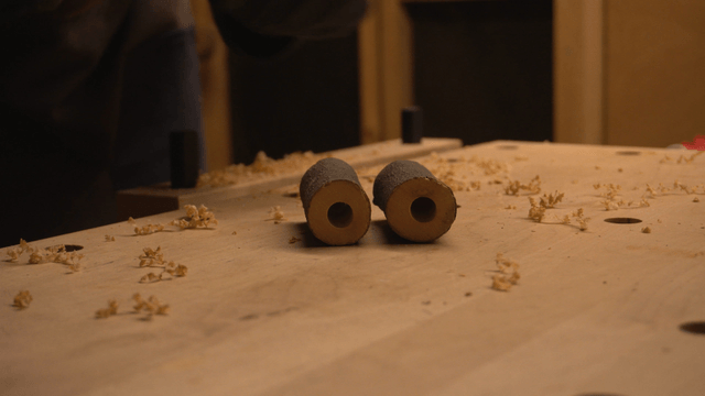 작업대에서 나무가 가공되는 모습