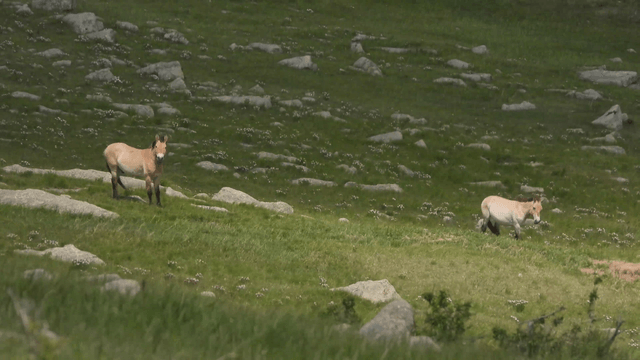초원에서 자유롭게 뛰어다니는 야생마