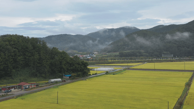 농촌 농지와 마을의 전경
