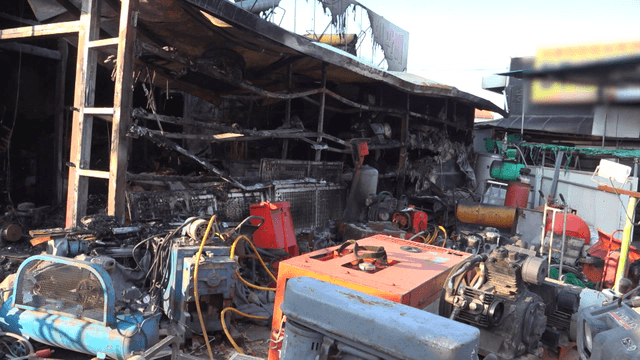 불이난 화재 현장에 쌓인 재와 철물들