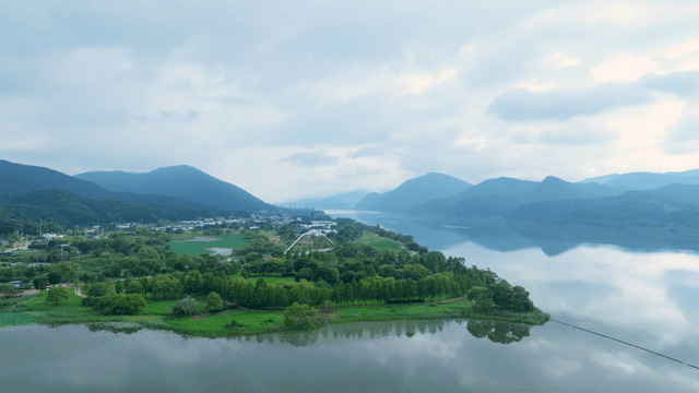 푸른 녹지와 강이 있는 경치 좋은 공원