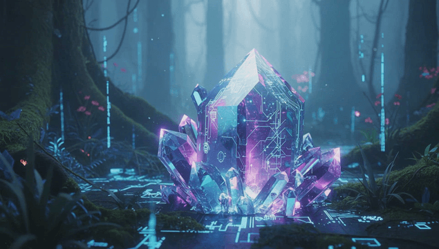 에너지 파동이 있는 빛나는 분홍색 크리스탈