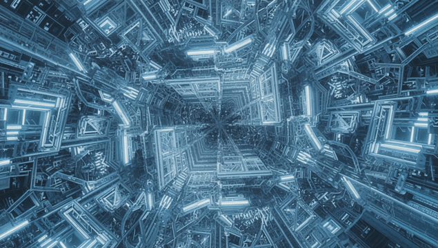 복잡한 얼음 패턴 밑으로 흐르는 시냇물