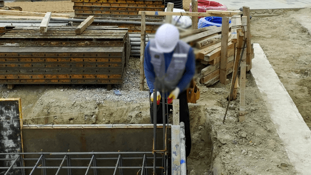 철근과 거푸집으로 구성된 건설 현장의 모습