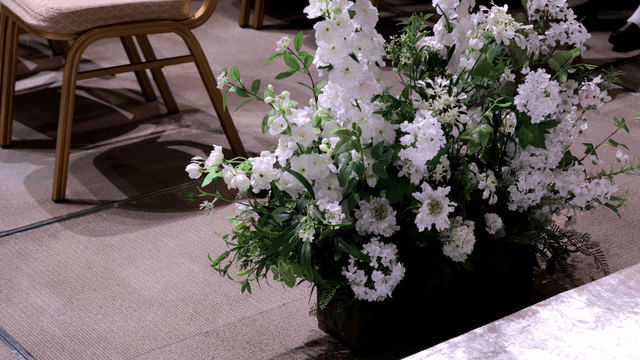 테이블 위의 흰 꽃과 양초