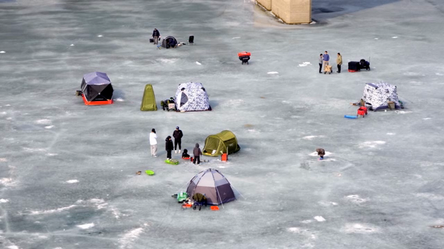 얼어붙은 호수에서 빙어 낚시하기