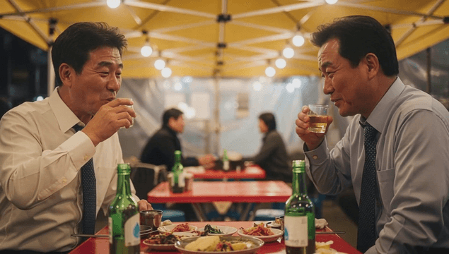 포장마차에서 소주를 즐기는 두 남자