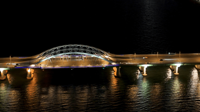 차들이 움직이는 다리의 야경