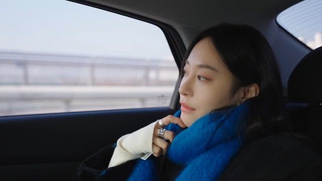 택시 창밖 도로를 바라보는 여성의 옆모습