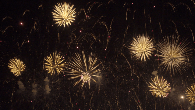 밤하늘 위로 터지는 다채로운 불꽃놀이