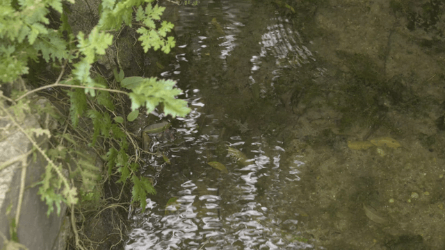 바위와 식물 사이로 흐르는 작은 시냇물