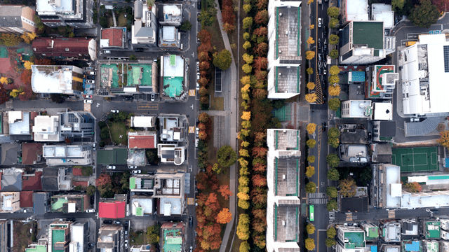 가을 단풍이 든 공원의 항공 뷰