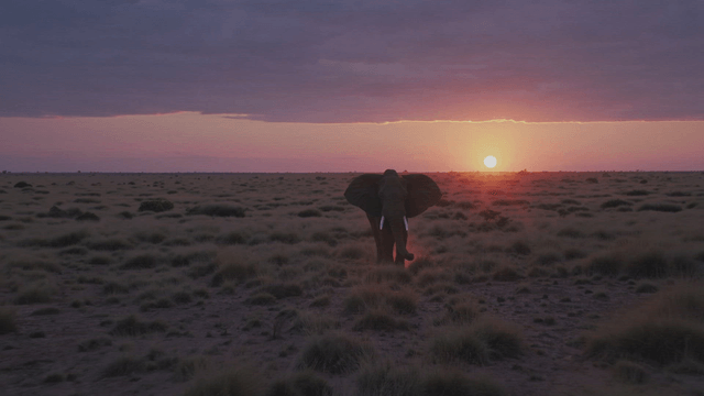 사바나에서 석양을 배경으로 걷는 코끼리들