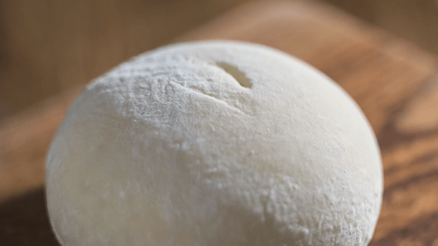나무 도마 위에서 반죽을 치대는 손