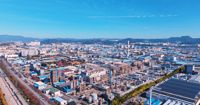 공장 및 산업시설이 보이는 연안 도시 풍경
