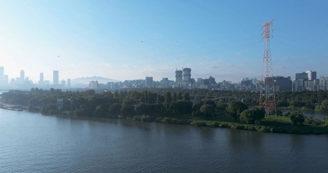 대교와 한강이 있는 서울 도시의 항공 뷰