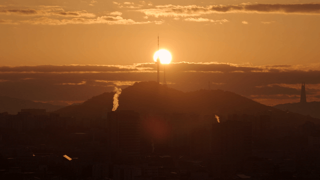 도시 전경과 산이 보이는 장면