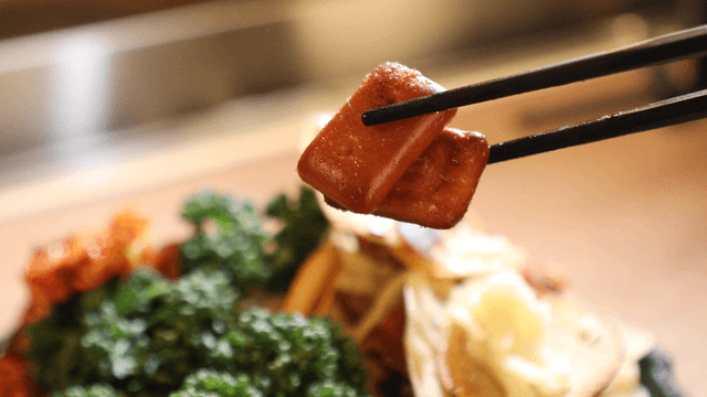젓가락으로 집어 올리는 머릿고기